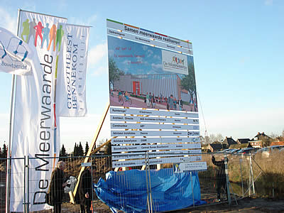 Donderdagmiddag onthulden de wethouders van de gemeente Barneveld, de heren Van Dalen en De Kruijf, de naam en het bouwbord van het Sportcomplex bij De Meerwaarde aan de Rietberglaan. Met dit Sportcentrum zet De Meerwaarde Barneveld in beweging. Vertegenwoordigers van het bestuur en de directie van De Meerwaarde, de sportsectie van de school, bouwonderneming Grootheest, bestuursleden van SSS, vierden op de bouwlocatie de start van het tweede bouwproject.